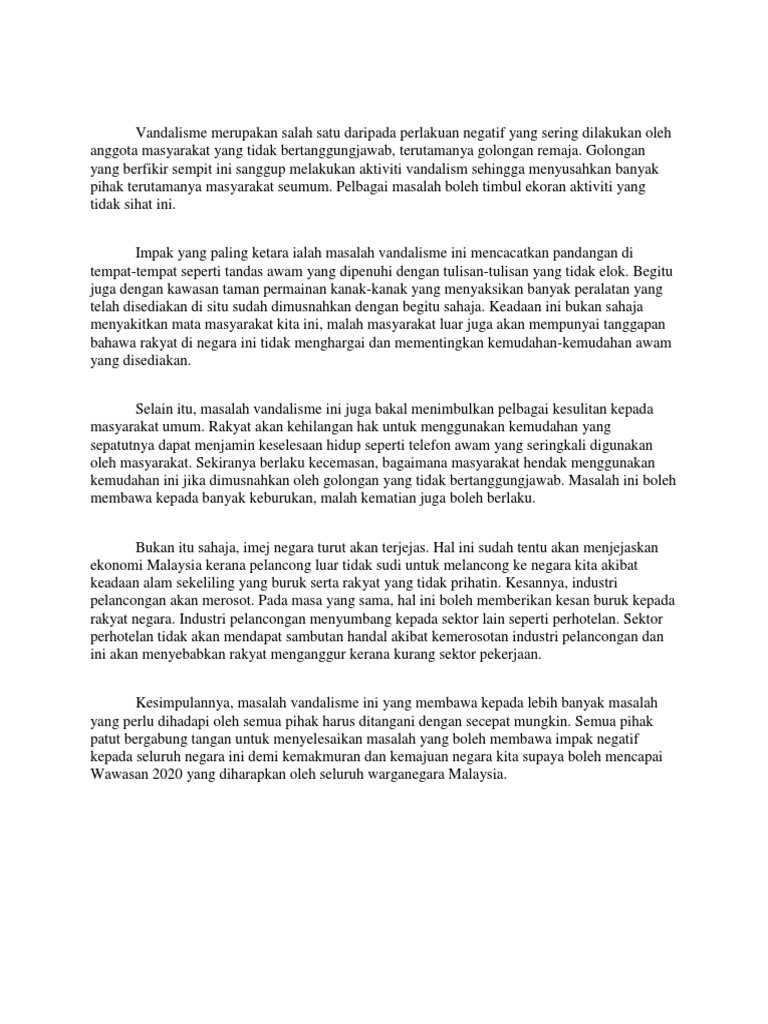 Karangan Bahasa Melayu Tingkatan 2 Vandalisme Dalam Kalangan Remaja from imgv2-2-f.scribdassets.com .dalam perkembangan remaja memiliki tugas penting dalam membentuk psikologi remaja dan agar peran keluarga dalam menanamkan pendidikan reproduksi pada remaja bisa berjalan secara tempat terbaik dalam memberi pengajaran tentang perencanaan keuangan untuk para remaja. Ada apa dengan buah apel ? Untuk melihat detail lagu contoh karangan gejala sosial dalam kalangan remaja klik salah satu judul yang cocok, kemudian untuk link download contoh play download. Karangan gejala sosial dalam pelajar vandalisme di pelajar sekolah february 25, 2009 at 2:02 am · filed under mariah's. Masalah sosial jenayah dalam kalangan remaja. Soalan rumusan gaya hidup sihat karangan, soalan rumusan gaya hidup sihat pemakanan, soalan rumusan gaya hidup sihat remaja. Apa sih karangan narasi itu? Dalam mencari jati dirinya remaja tidak jarang remaja membuat masalah sosial seperti kenakalan remaja.