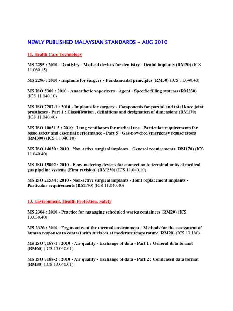List Of Malaysian Standard : Last updated august 15, 2020.